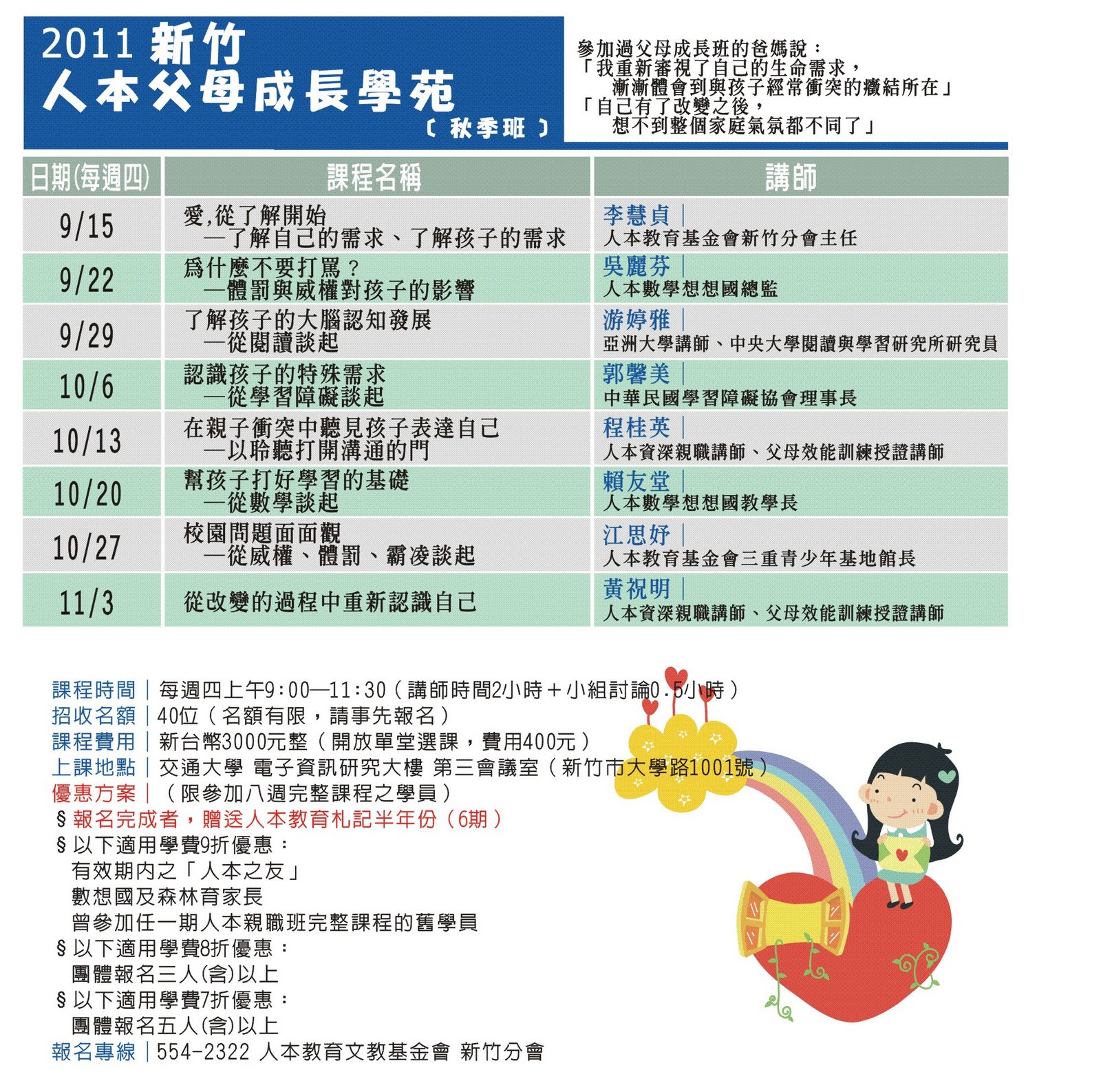 2011 新竹人本 父母成長學苑秋季班 開課囉!